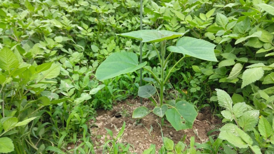 8月13日、台風8号が試験ほ場を直撃し、22本の苗が被害を受けました(図12および13)。被害を受けた22本のうち、完全に倒れたのは2本、他は傾きながらも持ちこたえました。22本には支えのポールを立てて直立させました。その結果、全部の木が無事に復活しました。