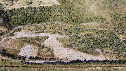 菌根菌(ショウロとAMF)を接種したクロマツの植栽地(掛川市弁財天)(定植約1年後撮影)